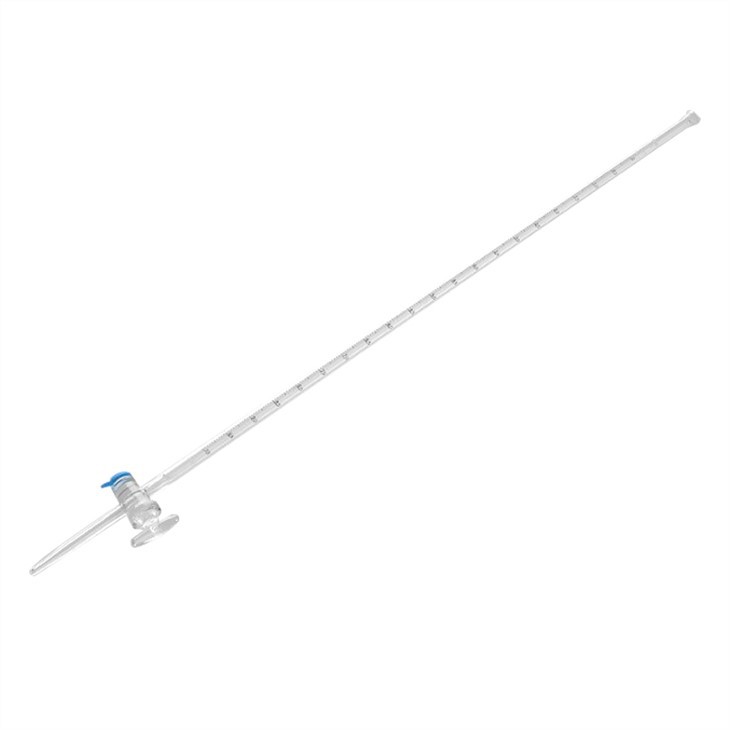 Burette مصنوع من زجاج البورسليكات 3.3 عالي الجودة مع محبس مفتاح زجاجي. السحاحة الزجاجية تعني وعاء قياس ، وهو يحتفظ بمحلول المعايرة عند إجراء عملية المعايرة.